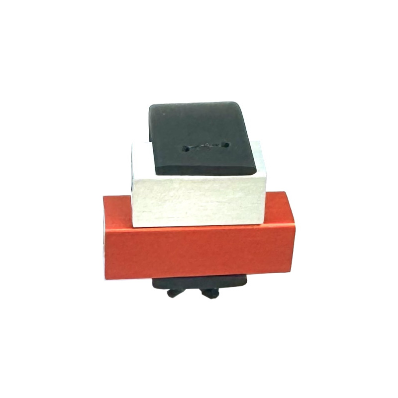 Kautschuckring aus flachem Kautschukstrang mit zwei unterschiedlich goßen eckigen Aluröhrchen