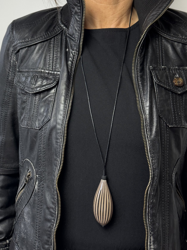 Mobile Preview: Muranoglaskette, beige-schwarz