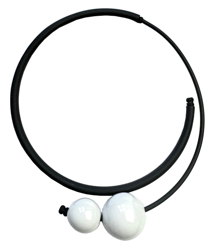 Kautschuk-Muranoglas-Halsreif, hellgrau - schwarz