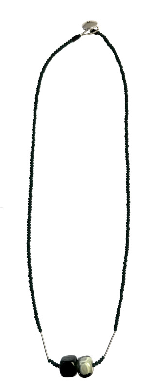 Lange Muranoglas-Edelstahlkette, dunkelgrün-hellgrün
