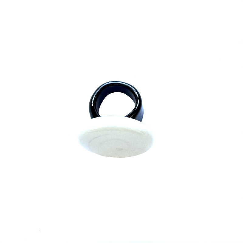 Mobile Preview: Muranoglasring, weiß-schwarz
